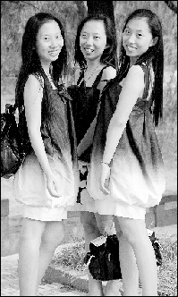統(tǒng)一的湖藍(lán)色花苞裙,穿在一樣身高相貌、長發(fā)飄飄、笑靨如花的王安伊、王安冉、王安琪三姐妹身上,一股清涼之風(fēng)撲向眼簾。