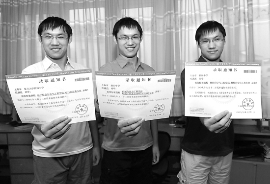 今年高考錄取階段發(fā)生了一樁稀罕事,也是大喜事:滬上三胞胎兄弟,齊齊考入上海交大。老大葉誠明,被電氣信息專業(yè)錄;老二葉誠亮,被機(jī)械工程專業(yè)錄;老三葉誠輝,被材料科學(xué)專業(yè)錄取。親戚朋友們都很興奮,表示祝賀,三兄弟卻挺平靜:“我們只是發(fā)揮了正常水平,考進(jìn)名校也是在意料之中。”