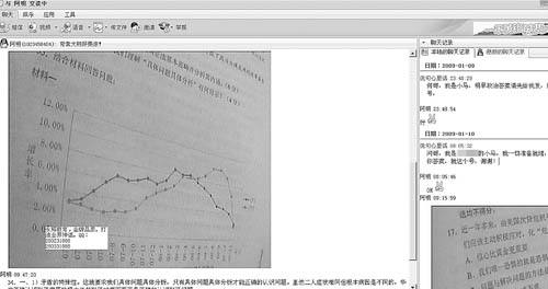 9時(shí)剛過(guò),小王的網(wǎng)友“阿明”通過(guò)QQ傳來(lái)一張政治試卷的圖片,圖片顯示的是選擇題第17題到第19題的內(nèi)容。一刻鐘后,又一張圖片傳過(guò)來(lái),這次顯示的是一個(gè)圖形題。大約又過(guò)了一刻鐘,“阿明”傳來(lái)一份政治簡(jiǎn)答題答案。上午10時(shí)43分,主觀題答案發(fā)送完畢。緊接著,單選題和多選題的答案也陸續(xù)發(fā)送過(guò)來(lái),離考試結(jié)束前10分鐘時(shí),“阿明”發(fā)來(lái)“完畢”二字。