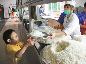 半小時(shí)后,李浩出現(xiàn)在食堂,花五毛錢(qián)買(mǎi)了兩個(gè)饅頭。由于食堂窗口差不多與他身高一般高,李浩要踮著腳,然后舉著飯卡才能順利在讀卡機(jī)上劃卡!梆z頭很軟很好吃!”坐在食堂細(xì)嚼慢咽后,他便趕到預(yù)定位置集合,準(zhǔn)備參加開(kāi)學(xué)典禮。