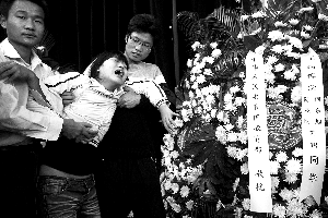 “我們都是英雄父母的兒女”、“英雄的父母就是我們的父母”,這些條幅伴著菊花,堆滿靈堂。