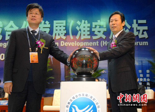 論壇上,江蘇省經(jīng)濟與信息化委員會副主任陳為保和淮安市市長高雪坤共同為產(chǎn)學(xué)研合作互動平臺——江蘇省經(jīng)濟與信息化委員會培訓(xùn)基地、淮安市產(chǎn)學(xué)研協(xié)會揭牌。
