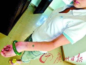 本報(bào)訊 (記者盧迎新攝影報(bào)道) 15歲花季少女小玫(化名),外表單純可愛(ài),但卻“自割”成癮。從兩年前開(kāi)始,她常常在課堂上用小刀割自己的手至流血不止,以此來(lái)“獲得快感、釋放壓力”。迄今為止,她的手上留下了200多道疤痕,正在廣東省武警總隊(duì)醫(yī)院青少年成癮治療中心治療。