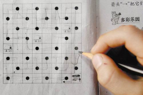 孩子做不出來,請教爸爸、媽媽,他們上過大學(xué)。兩個大人仔細(xì)讀了一遍題,接著在圖表上用鉛筆輕輕地畫了起來,不是繞不過房子,就是漏投了那么一兩家!斑是問問你姥爺吧,他教過數(shù)學(xué)!19日晚,這道題又傳到了老韓的手里。