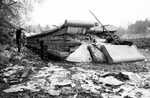 昨天,記者在北大未名湖湖心島東岸看到坍塌石舫的周圍已攔上圍欄,不許學(xué)生和游人進(jìn)入。此時,工人們正在對石舫周邊的淤泥進(jìn)行清淤。石舫一端,頭部位置約一米多寬、一米長的石頭坍塌,從石舫上方看,有并排兩塊石頭掉落,從石舫正面觀察,有約兩米多的石頭已全部損毀(見圖)。