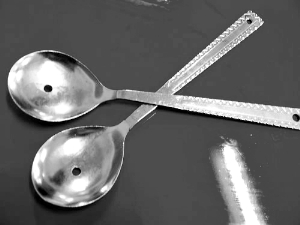 “拿到一把湯勺看見中間穿了一個孔,還以為是壞了的,但挑了半天都是壞了的。”李同學告訴記者。據悉,此次食堂啟用的這套特別的湯勺有2000只,湯勺的柄子還有舀湯處均打了一個約5毫米左右的小洞。而同時飯?zhí)玫拿繌堊雷由弦操N上了一篇題為《勺子進化了》的文章,以解釋此舉。