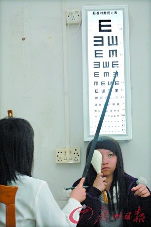 而記者了解到,江門中小學保健所近日所做的2008~2009學年中小學學生體質抽查結果顯示:學生視力下降很明顯,隨著年齡的增長,近視發(fā)生率越高,小學近視率是30%、初中是50%、高中是70%。