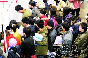 某高校英語系研究生即將畢業(yè)的吳婷2月8日剛剛參加完在老國展舉行的大型人才招聘會。雖然在抱怨招聘會,但是看到緊接著14至15日同樣在老國展有招聘會的消息,吳婷還是強打起精神,握緊拳頭:“還是再去碰碰運氣吧!”