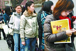 本報訊 今天上午9時,2009年女大學(xué)生專場招聘會在位于德勝門的北京畢業(yè)生就業(yè)市場舉行。離招聘會開始還有半小時,門前卻已蜿蜒排起了幾百米的長隊。截止記者發(fā)稿時,應(yīng)聘學(xué)生已突破了四千人。