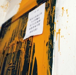 郭先生在浮山后買了一套房子,抓緊裝修準備盡早住進去,可是裝修還沒完成,有人卻上門幫著“粉刷”起來,讓人很是無奈。昨日,郭先生撥打早報熱線82888000反映說,他家大門和樓道里半夜被人潑了油漆,可是他從沒得罪過人,再說房子還沒住過,肯定是有人潑錯地方了。