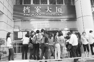 中國(guó)證券報(bào)記者在檔案大廈四樓業(yè)務(wù)大廳看到,一間100平方米左右的房間開(kāi)設(shè)了7個(gè)服務(wù)窗口,每個(gè)窗口前都擠滿了人。而在檔案大廈外面,沒(méi)能排到號(hào)的市民遲遲不愿離去,任憑保安反復(fù)解釋,人群仍是相當(dāng)激動(dòng)。