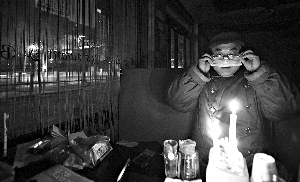 由于停水停電無(wú)暖氣,陸大任只能去附近居民家借水,并用爐子燒蜂窩煤取暖。前日,蜂窩煤爐也被相關(guān)管理部門(mén)收走。陸大任現(xiàn)在24小時(shí)在店里,天冷,他就穿上厚厚的軍大衣和棉褲。