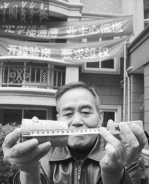 “結果出來就是沒有一個洞是合格的,當我們拿著這個跟開發(fā)商說的時候,他們還說樓是合格的,這只不過是瑕疵而已。”徐建興說。