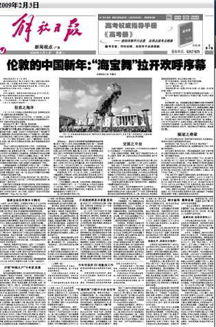 “當時從謝斯百瑞大街到廣場滿是人,從中午12點到下午5點結束,統(tǒng)計數(shù)字是10萬人次。2004年到2005年也是10萬多人次,2006年和2007年超過20萬人次,到2008年達到30萬人次,今年又比去年增加5萬多。有意思的是,觀眾90%是倫敦本地市民和歐洲游客! 鄧柱廷翻開筆記本對記者介紹。