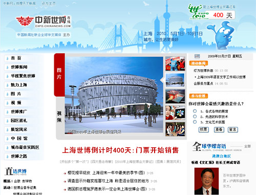 欣聞貴網(wǎng)將在世博會倒計時四百天之際(3月27日)開通“中新世博在線”,謹(jǐn)表示熱烈祝賀!