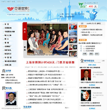 中新網(wǎng)3月27日電 2010年上海世界博覽會(huì)今日進(jìn)入倒計(jì)時(shí)400天,中國新聞社聯(lián)合海外華文媒體創(chuàng)辦的“中新世博在線(expo.chinanews.com)”正式上線。在此之際,海外華文媒體通過“中新世博在線”寄語上海世博會(huì)(expo.chinanews.com/more/hmjy.html),表達(dá)華人對(duì)中國舉辦世博會(huì)的驕傲和自豪,期盼上海世博會(huì)成功、精彩。