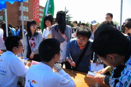 5月1日,中國2010年上海世博會倒計時一周年的日子,上海交通大學“中國2010年上海世博會”志愿者招募啟動暨上海交通大學上海世博會工作站成立儀式,在交大閔行校區(qū)內舉行,1000余名學生來到現場進行咨詢。