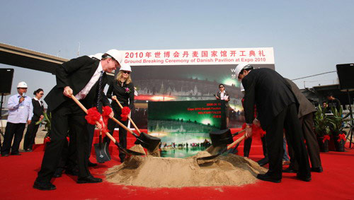 5月15日下午,上海世博會(huì)丹麥國家館在世博園區(qū)開工建設(shè),丹麥館以“夢想城市”命名,將邀請各國參觀者步入丹麥?zhǔn)降耐捠澜,體驗(yàn)丹麥的城市生活。上海世博會(huì)事務(wù)協(xié)調(diào)局局長特別助理張?zhí)N杰、丹麥王國駐上?傤I(lǐng)事何麗蘭(Susanne Hyldelund)和丹麥館項(xiàng)目總監(jiān)韓少江(John Hansen)等出席動(dòng)工儀式。