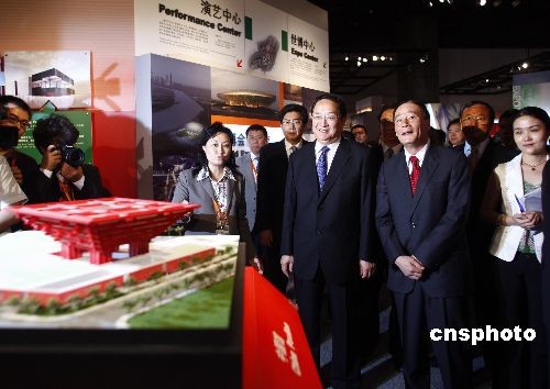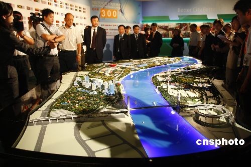 7月5日,上海世博會倒計(jì)時(shí)300天之際,由世博會組委會主辦的“走進(jìn)世博會”大型展覽在北京首都博物館開幕,國務(wù)院副總理王岐山、上海市委書記俞正聲等出席啟動儀式。本次展覽匯集了最全面的上海世博會籌辦進(jìn)展資料,其中首次亮相的59個(gè)展館實(shí)物模型、中國館“萬花筒”、張藝謀團(tuán)隊(duì)最新制作的世博園虛擬電影,是本次展覽會的亮點(diǎn)。中新社發(fā) 鄭雄增 攝