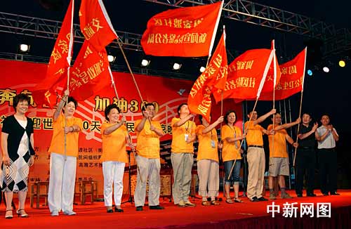 當日晚會上,周家渡志愿者服務(wù)總隊宣告成立,7支志愿者分隊隊長代表社區(qū)全體志愿者接受志愿者接受了世博局官員和周家渡社區(qū)黨工委副書記、辦事處常務(wù)副主任袁濤的授旗!爸芗叶缮鐓^(qū)民樂中心”同步揭牌成立,為區(qū)域內(nèi)民族音樂愛好者搭造以藝會友,陶冶情操的舞臺。民樂中心成立之后將充分集合周家渡社區(qū)以及上海青年家園民間組織服務(wù)中心的各類資源,將社區(qū)民族音樂打造成為世博期間一抹亮色。