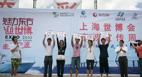 11日上午,“魅力東方迎世博--走進(jìn)寧波”大型直播活動(dòng)在象山松蘭山海灘舉行。直播活動(dòng)全面報(bào)道了寧波市迎接2010年上海世博會(huì)的情況,各類主題剪紙表演、專家訪談、小朋友百米兒童畫、沙灘趣味運(yùn)動(dòng)會(huì)、手語(yǔ)表演、民俗演出等活動(dòng),讓夏日的海灘活力十足。上海世博局國(guó)內(nèi)參展顧問(wèn)黃耀誠(chéng)現(xiàn)場(chǎng)向5位幸運(yùn)市民頒發(fā)了世博請(qǐng)柬,送出了來(lái)年之約。