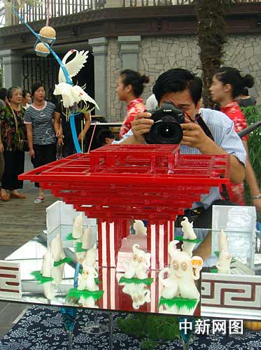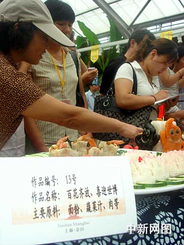 比賽現(xiàn)場(chǎng),方糕、麻球、眉毛餃、菜塔餅……一道道色、香、味俱全的江南特色小吃在農(nóng)村新天地里擺開了擂臺(tái)。不少來(lái)此旅游觀光的游客,在品嘗了這些原汁原味的江南傳統(tǒng)小吃之后,還不禁躍躍欲試、一試身手,與金山的巾幗美食高手們一起互動(dòng)競(jìng)秀。此外,由美食巧匠們制作的一組演繹上海世博會(huì)主題的創(chuàng)意小吃作品,表達(dá)了金山姐妹喜迎世博的美好心情。