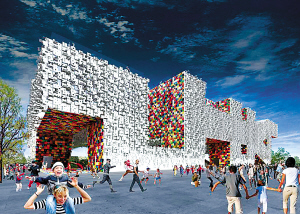 韓國(guó)文字不同于其他文字,一般人即便不識(shí)卻很容易辨認(rèn)。韓國(guó)國(guó)家館設(shè)計(jì)師正是巧妙地利用不同膚色人群的共同認(rèn)知,用韓文來“建造”展館:遠(yuǎn)觀展館,由幾個(gè)碩大的韓文字母連接而成;近看外墻,則為無數(shù)凹凸有致的韓文字母。可以說,韓國(guó)國(guó)家館是用韓文符號(hào)組成的抽象建筑物,是一個(gè)“空間化符號(hào)”,韓國(guó)文字的幾何學(xué)特性從建筑學(xué)角度被巧妙地重新詮釋,成為韓國(guó)國(guó)家館的獨(dú)特構(gòu)成要素,并因此成為世博園區(qū)的一個(gè)奇特景觀。