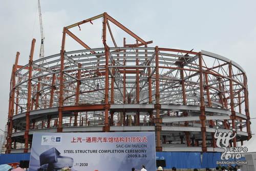 8月26日上午,2010年上海世博會(huì)上汽-通用汽車(chē)館鋼結(jié)構(gòu)正式封頂,標(biāo)志性的螺旋型建筑外觀雛形初現(xiàn)。上海世博局黨委副書(shū)記許偉國(guó)、上海汽車(chē)副總裁肖國(guó)普、通用汽車(chē)中國(guó)公司總裁兼總經(jīng)理甘文維等出席封頂儀式,共同見(jiàn)證最后一顆螺釘釘入鋼梁。