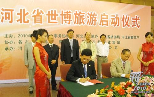 上海世博會(huì)河北世博旅游啟動(dòng)儀式12日在石家莊市舉行。啟動(dòng)儀式上,上海世博局與河北康輝國際旅行社正式簽署了世博游協(xié)議。
