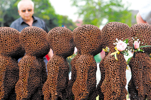 世博會(huì)建設(shè)留下的破銅爛鐵搖身一變,成了承載藝術(shù)家奇思妙想、宣傳節(jié)能環(huán)保的“精靈”。昨天(16日),2009年上海國(guó)際鋼雕藝術(shù)節(jié)拉開帷幕,來自世界各地近百具由廢棄金屬改造的雕塑奪人眼球。前擋板抹上“口紅”,輪胎和車身“穿”上彩色噴漆,報(bào)廢鏟車蛻變?yōu)椤澳Φ桥伞薄?table border=0 cellspacing=0 cellpadding=0 align=left>