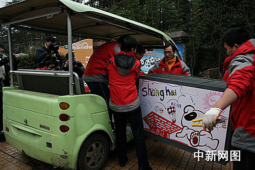 5日上午8點(diǎn),“2010大熊貓世博行”歡送儀式在雅安碧峰峽基地舉行,儀式后10只世博熊貓于9:30左右啟程前往成都,將于下午13:30-14:00之間從成都雙流機(jī)場乘專機(jī)飛往上海。