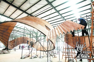 據(jù)悉,目前湖南館的地臺的鋼架、環(huán)體的胎架和其中一個環(huán)體以及投影機的桁架已經(jīng)基本完成,也將于近期啟運到上海。相關(guān)的后續(xù)搭建工作計劃于4月15日前完成并投入試運營。整個展館的組裝過程將歷時近100天。