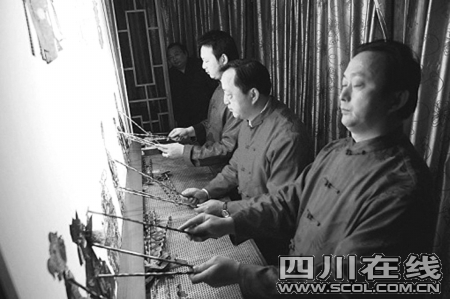 雪白的幕布上,兇猛的張飛,驍勇的關(guān)羽輪流揮刀騎馬上陣。鼓點越來越密,關(guān)羽與蔡陽的搏斗也越來越激烈……昨日下午,閬中嘉陵江邊,王氏兄弟正在排練川北皮影戲經(jīng)典劇目《斬蔡陽》,為參加上海世博會做準備。