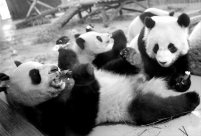 早春時節(jié),野外大熊貓正在盡情享用美味春筍。上海動物園里10只遠道而來的 “世博熊貓”也開始執(zhí)行春季新食譜,每天加餐時令春筍,吃更多竹葉,同時漸漸降低奶制品濃度。