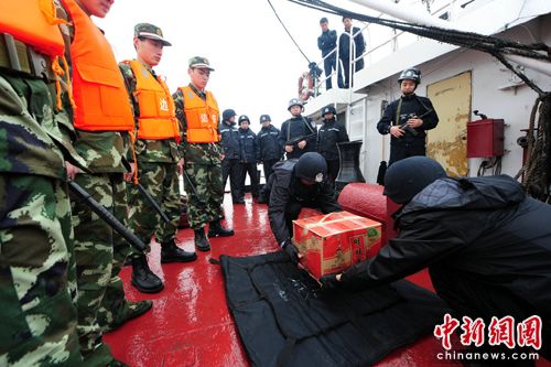 中新網(wǎng)舟山4月27日電(記者 趙曄嬌 通訊員 包能偉)昨天下午2時(shí),浙江省舟山市定海區(qū)公安、海事、港航、海洋與漁業(yè)、邊防等多部門聯(lián)合舉行“清!笔啦┌脖B(lián)合演練。本次模擬警情為一名在定海農(nóng)村宕口做爆破員的犯罪嫌疑人,私自截留了10公斤炸藥,企圖帶往上海金山幫助一不符合爆破條件的工地進(jìn)行爆破作業(yè)。