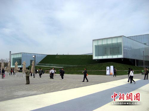 愛爾蘭館整個(gè)被包裹在一個(gè)由玻璃和聚碳酸酯組成的多層半透明狀的外立面中,作為絕緣材料的聚碳酸酯起到了為展館內(nèi)部過濾光線的作用。而通過外部表面覆蓋層則可以隱約看到參觀者在館內(nèi)的活動(dòng)。這些帶有坡度的半透明的布展格局,全部懸掛在作為展館基座的若干塊綠色土丘上。這些如同燈籠般半透明的設(shè)計(jì)反映了愛爾蘭發(fā)展經(jīng)驗(yàn)的雙重性,象征著城市與農(nóng)村、人文與自然的和諧關(guān)系。
