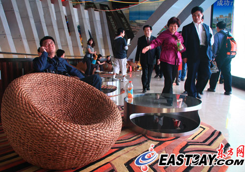 以“崛起的大國”為主題的南非館這次完全舍棄了野生動物、美麗風(fēng)光等常態(tài)化展示,而是用一個球形的視頻墻占據(jù)在展館中央,四周圍放置著竹編的各式藤椅。負(fù)責(zé)籌建和部分設(shè)計的南非館的中方負(fù)責(zé)人黎先生告訴東方網(wǎng)記者,由于南非館將在世博會期間進(jìn)行五大主題的展示,“只有視頻能夠最好展現(xiàn)出來!