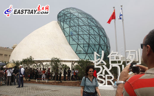 東方網(wǎng)記者今天上午在位于世博園A片區(qū)以色列館門外廣場看到,這里已經(jīng)是人山人海,由于今天陽光比較充足,現(xiàn)場很多人都打起了遮陽傘。記者看到,雖然以色列館外目前還沒有表演活動,館內(nèi)場景的布置和展示也和之前一樣,但是觀眾熱情依然非常高,排隊人群已經(jīng)把場館“團(tuán)團(tuán)圍住”,F(xiàn)場工作人員告訴記者,參觀者可能需要排隊一小時才能入館參觀。記者還在現(xiàn)場遇到不少以色列人,和大家熱情打招呼,他們一大早就專程趕到以色列館參加今天的活動。