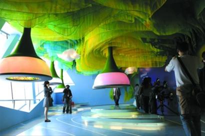 輕輕觸摸像蘑菇一樣的植物,感覺涼涼的、軟軟的;葉片上垂下長長的絲線,像白色的觸須……這是英國館里展示的“未來植物”。工作人員介紹說,將來可讓蘑菇狀植物粘附于室內(nèi)墻壁上,發(fā)揮吸音功能,降低噪聲;而垂下絲線的植物更加神奇,如將犯罪嫌疑人的基因植入這種植物體內(nèi),此后一旦檢測到相同的基因,植物就能自動發(fā)出聲音報(bào)警。等科學(xué)家的這些研究成熟后,看似神奇的童話將變?yōu)楝F(xiàn)實(shí)。