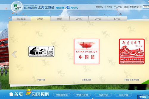 “網(wǎng)上世博護(hù)照”所用的展館印章與實體展館的基本一致。這些印章生動體現(xiàn)了各展館的特色,具有收藏價值,同時,網(wǎng)民還可以隨時查看已經(jīng)收集的印章與尚未收集的印章,并可在論壇發(fā)帖,將自己收集的印章與網(wǎng)友分 享。