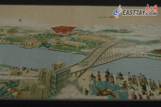 近日,一幅長(zhǎng)2.5米、寬31厘米的《世博勝景圖》在上海師范大學(xué)創(chuàng)作完成。該圖模擬古代名跡《清明上河圖》、《姑蘇繁華圖》,盡收世博園區(qū)各主要展館和上海從古到今的重要地標(biāo)。