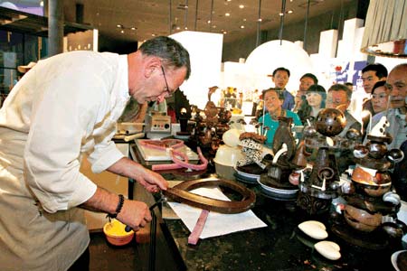 很少有游客會(huì)知道,從他的手下誕生的巧克力是有“巧克力中的勞斯萊斯”美譽(yù)的藝術(shù)品,而他的粉絲中更有美國前總統(tǒng)克林頓、女星伊麗莎白·泰勒等大牌人物。在結(jié)束他15天的上海世博會(huì)之行前,特里·莫瑞接受了本報(bào)記者的專訪。他興奮地告訴記者,回到比利時(shí),他就將研發(fā)一款“中國味”巧克力。