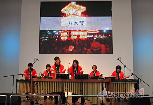 東方網(wǎng)記者向場(chǎng)上工作人員了解到,在日本產(chǎn)業(yè)館,每天都會(huì)上演四場(chǎng)音樂會(huì),時(shí)間分別為11:00、13:30、16:00和18:30,諸多來自日本本土的專業(yè)級(jí)音樂團(tuán)體將為觀眾帶來風(fēng)格迥異的音樂節(jié)目,且每周都有不同的樂團(tuán)前來獻(xiàn)演。在這里,藝術(shù)家們將用或民族、或世界的樂器演奏中日等國(guó)的民族樂曲,而本周的節(jié)目將由日本著名的馬林巴樂團(tuán)“北星會(huì)”出演。