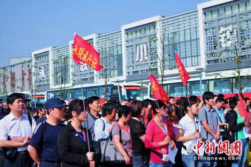 中新網(wǎng)張家港5月25日電(李克祥)“放眼看世界,享受新生活!苯裉烨宄,以此為主題的“萬(wàn)人游世博”在張家港永聯(lián)村正式啟動(dòng),由350名村民職工代表組成的首發(fā)團(tuán),登上開(kāi)往上海世博園區(qū)的“幸!贝蟀,實(shí)現(xiàn)不出國(guó)門(mén)的“出國(guó)”開(kāi)眼界之旅。