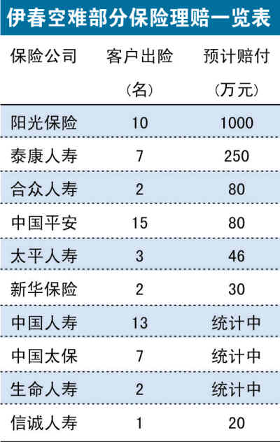 8月26日,中國太保向《國際金融報》記者證實,公司又確認伊春空難遇險客戶2名。至此,中國太保共有6名客戶在這起事故中遇難,1名客戶受傷。目前,公司已經(jīng)完成全部理賠流程,部分保險金已給付到位,并隨時可向其余受益人給付。