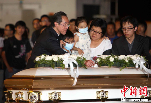 在馬尼拉阿基諾國際機場,一場簡單而莊嚴的遺體室內(nèi)送別儀式在當(dāng)日下午5時舉行。告別儀式由香港特區(qū)政府和菲律賓政府商定而成,中國駐菲大使劉建超及菲政府高層官員出席。