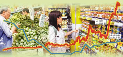 供港的平價(jià)衣履、耐用品、日常用品及食品多數(shù)靠?jī)?nèi)地進(jìn)口,倘人民幣升值,香港進(jìn)口商向內(nèi)地供貨商取貨時(shí),以港元計(jì)的進(jìn)口價(jià)勢(shì)必上升。其中,香港大部分食品由內(nèi)地入口,人民幣匯價(jià)攀升,加上原材料、運(yùn)輸費(fèi)用上漲,直接導(dǎo)致香港百物騰貴。港九罐頭洋酒伙食行商會(huì)理事林國(guó)坤指出,日前接獲內(nèi)地供貨商的通知,即日起調(diào)整來(lái)貨價(jià),大部分肉類罐頭批發(fā)價(jià)最少加價(jià)10%,以反映內(nèi)地生產(chǎn)成本及人民幣升值的影響,相信當(dāng)香港零售商的存貨售清后,市面零售價(jià)會(huì)相應(yīng)上調(diào)。