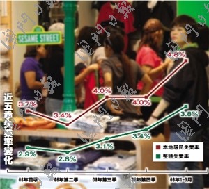 學(xué)者指出,每年第二、三季有不少大、中學(xué)生畢業(yè)投入勞動力市場,推高失業(yè)率。今年就業(yè)壓力大,畢業(yè)生找工作需時,第二、三季失業(yè)率恐怕會繼續(xù)上升,破4%的“臨界點(diǎn)”。雖然失業(yè)率會再攀升,但只要不超過5%,對社會就不會造成太大影響。