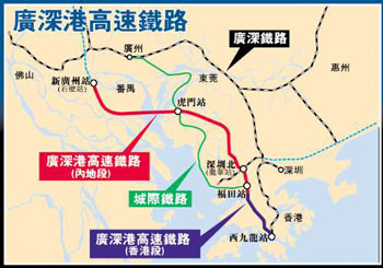 上月,香港與內(nèi)地就香港納入內(nèi)地高速鐵路網(wǎng)絡簽署備忘錄。為加快實現(xiàn)有關銜接,港府消息人士表明,廣深港高速鐵路香港段的興建,將爭取比原定2015年完工的目標,提早一年,于2014年竣工。根據(jù)政府計劃,鐵路最快于年底動工興建。