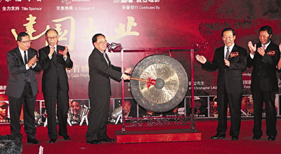 龍傳基金20日舉行《建國大業(yè)》慈善首映禮,籌得的善款將用以繼續(xù)推動華人青年的培育工作。曾蔭權(quán)20日晚親自主持儀式,為首映禮鳴鑼。